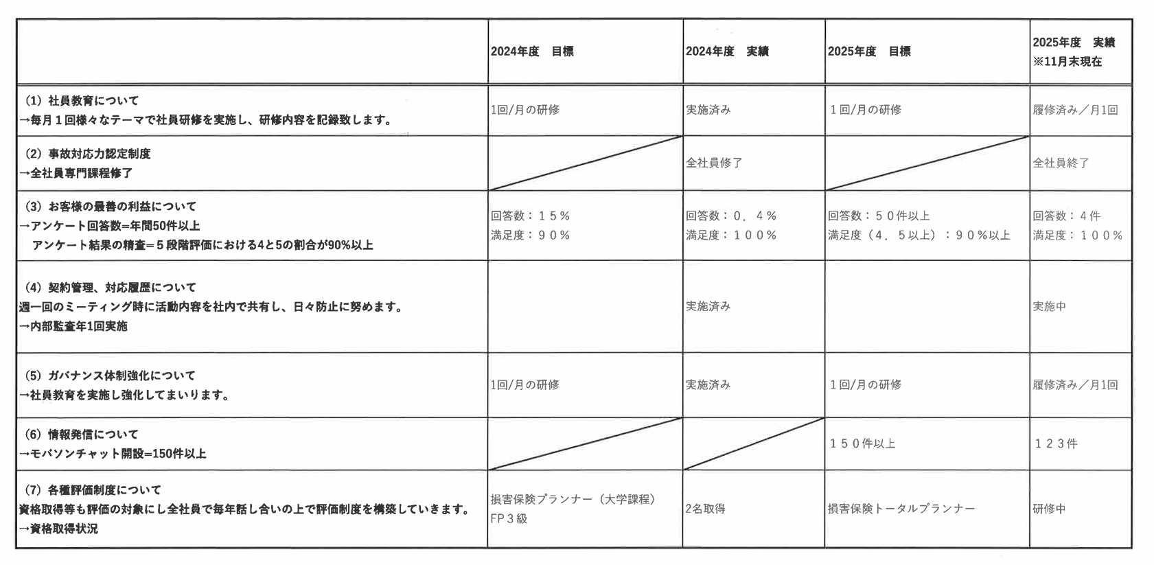 お客様に対して最善の利益を追求できる人財(なくてはならない人財)に、そして経営ビジョンに掲げた約束の達成に向け、社内環境を整備してまいります。